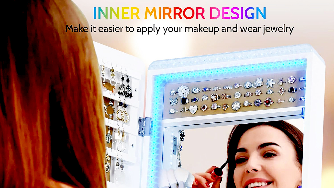 LVSOMT LED Standing Jewelry Mirror Cabinet