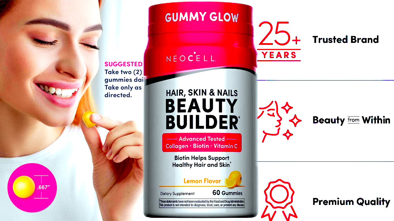 Neocell Beauty Builder Lemon Flavor, 60 Tasty Gummies – Beauty Builder Hair, Skin & Nails Gummies.