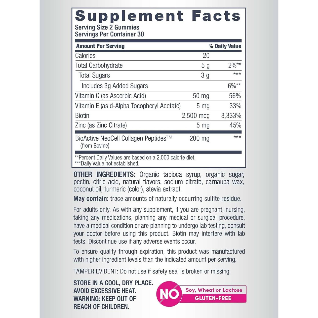 Biotin helps support healthy hair and skin*. True beauty starts beneath the surface with the #1 Beauty Supplement Brand.** NeoCell® Hair, Skin & Nails Beauty Builder* gummies feature five beauty-building ingredients in each serving, including biotin, collagen, vitamin C, vitamin E, and Zinc. Support beautiful hair, glowing skin, and healthy nails with these delicious lemon-flavored gummies.*