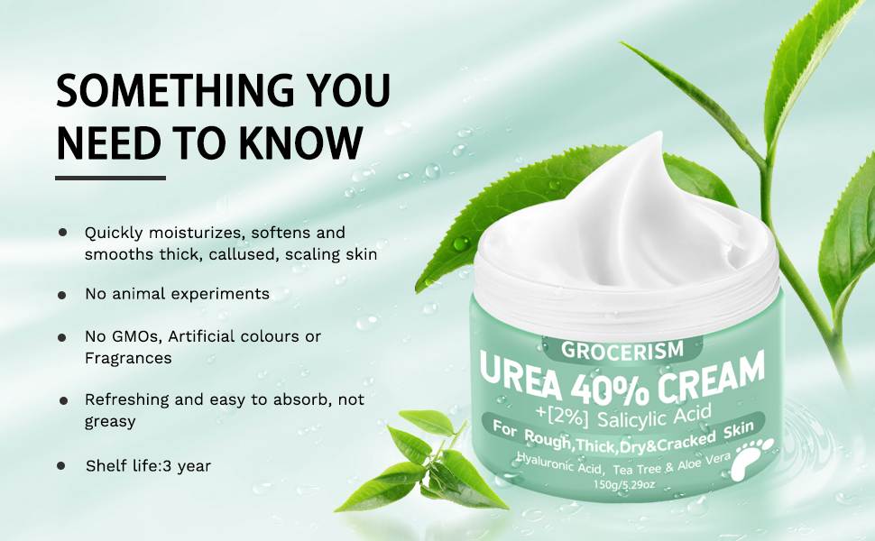- 【Make Your Skin Like a Baby】 Our urea cream is enriched with 40% urea, which can quickly soften calluses and moisturize the skin. Furthermore, the mixed 2% salicylic acid strengthens the exfoliating ability.
